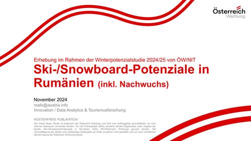 Die Erhebung wurde im Rahmen der Sommerpotenzialstudie 2024 von ÖW/NIT durchgeführt. Befragt wurden 2.000 Personen repräsentativ für die rumänische Bevölkerung im Alter von 18 bis 75 Jahren. Die Studie steht der österreichischen Tourismusbranche kostenfrei zur Verfügung.